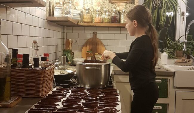 A hagyományos módszer mellett sütőben is lehet szárítani alacsony hőfokon.