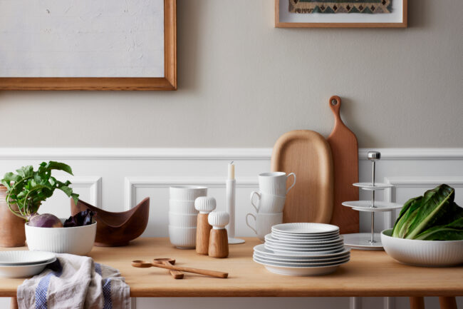 Egyszerű, funkcionális formák: minden tárgynak helye és szerepe van. A felesleges díszítés hiánya nem ridegséget, hanem tisztaságot közvetít.