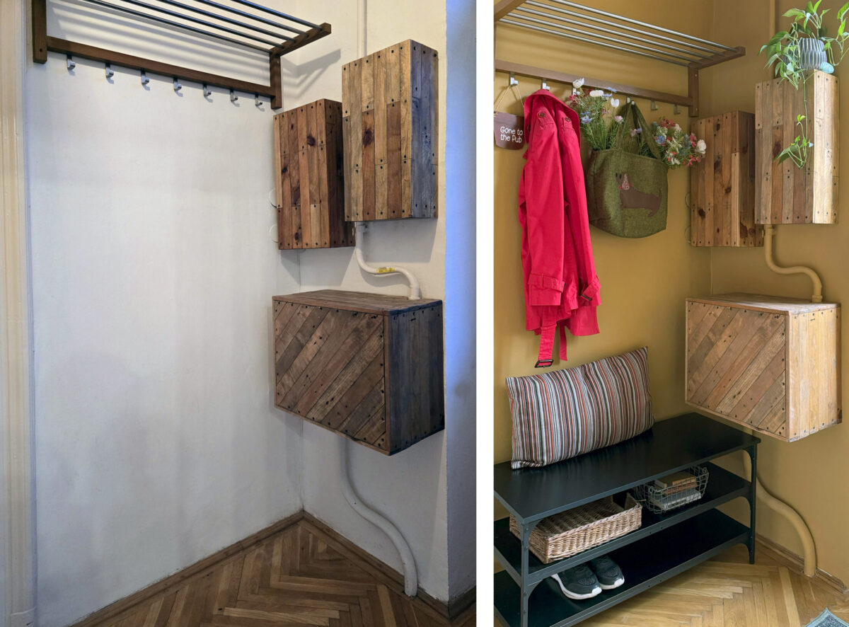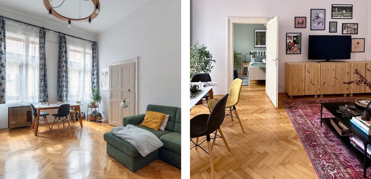 Egy 55 m2-es budapesti nagypolgári ingatlant kellett kiadásra felkészítenem. A megrendelő kérése az volt, hogy a lakás legyen színes, vidám, otthonos és hívogató, ugyanakkor szűkös büdzsével kellett gazdálkodnom meg kellett tartanom az eredeti burkolatokat, berendezési tárgyakat. A tervezés során, ahogy az esetek többségében fotók alapján dolgoztam. Az ingatlanban csak a munkafolyamat legvégén jártam, amikor a fotózáshoz stylingoltam. A kivitelezést Szendrődi Enikő a Nemiskacat Látványműhely tulajdonosa végezte, aki a hobbi bútorfestés magyarországi meghonosítója is egyben. Ebből a műhelyből rendeltem három évvel ezelőtt az első doboz krétafestéket, amellyel új, színes életem és karrierem kezdődött, majd csúcsosodott ki azáltal, hogy nemrégiben a lakberendezőjük lettem.