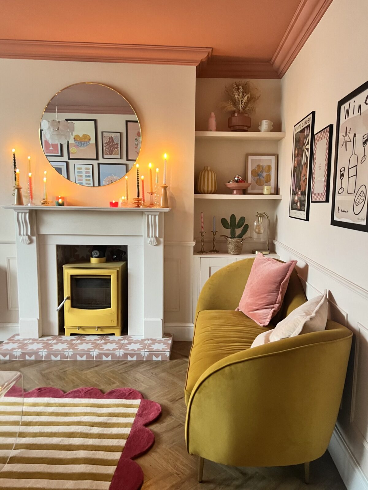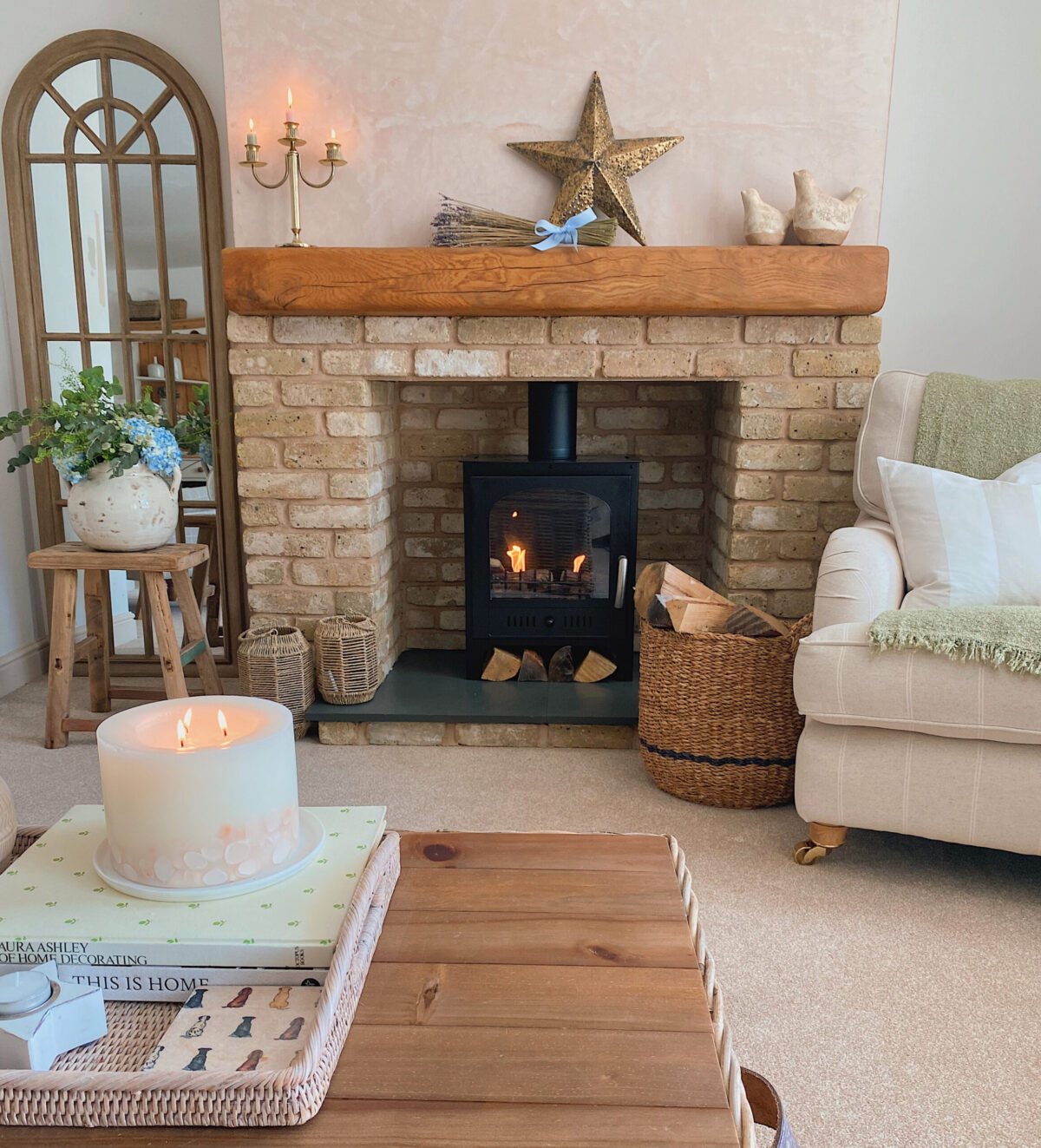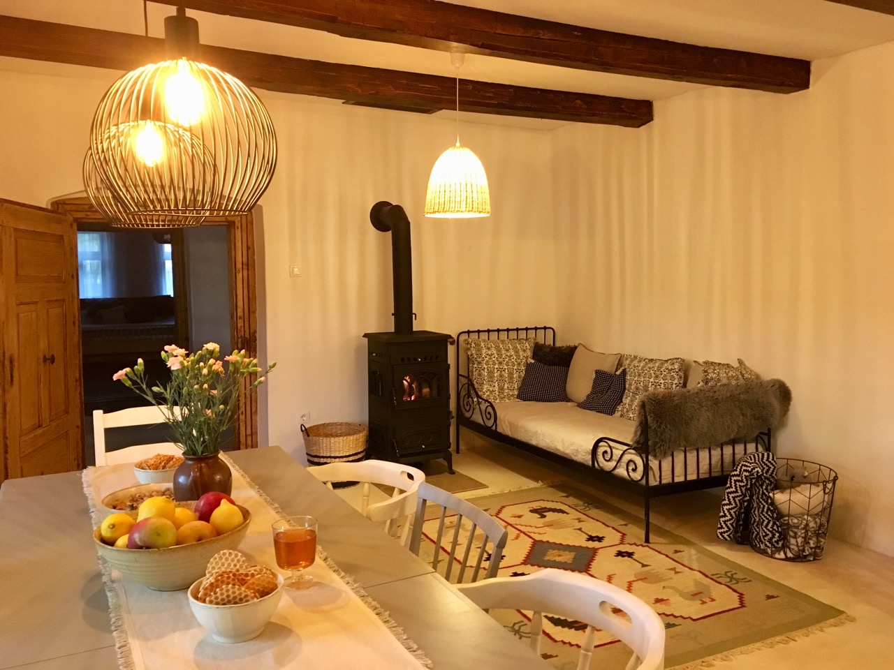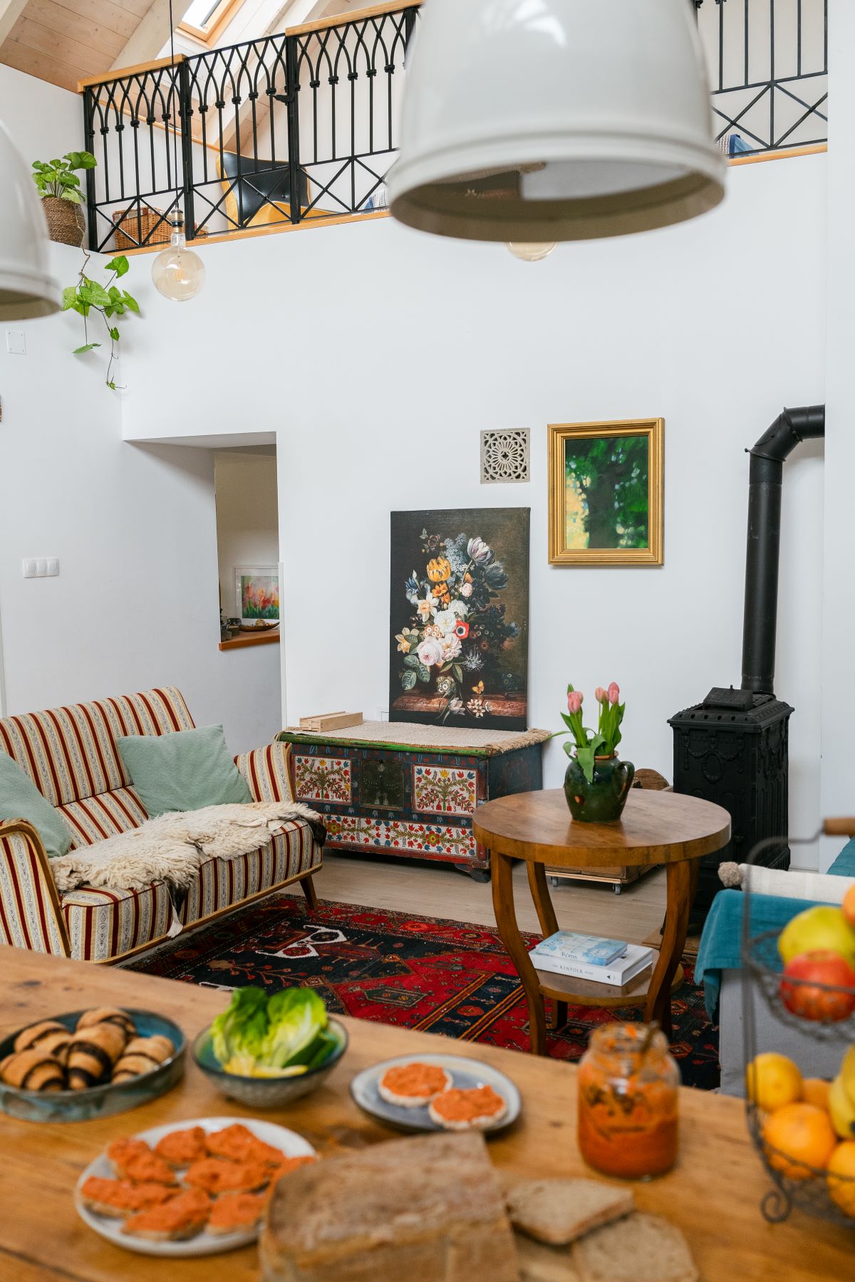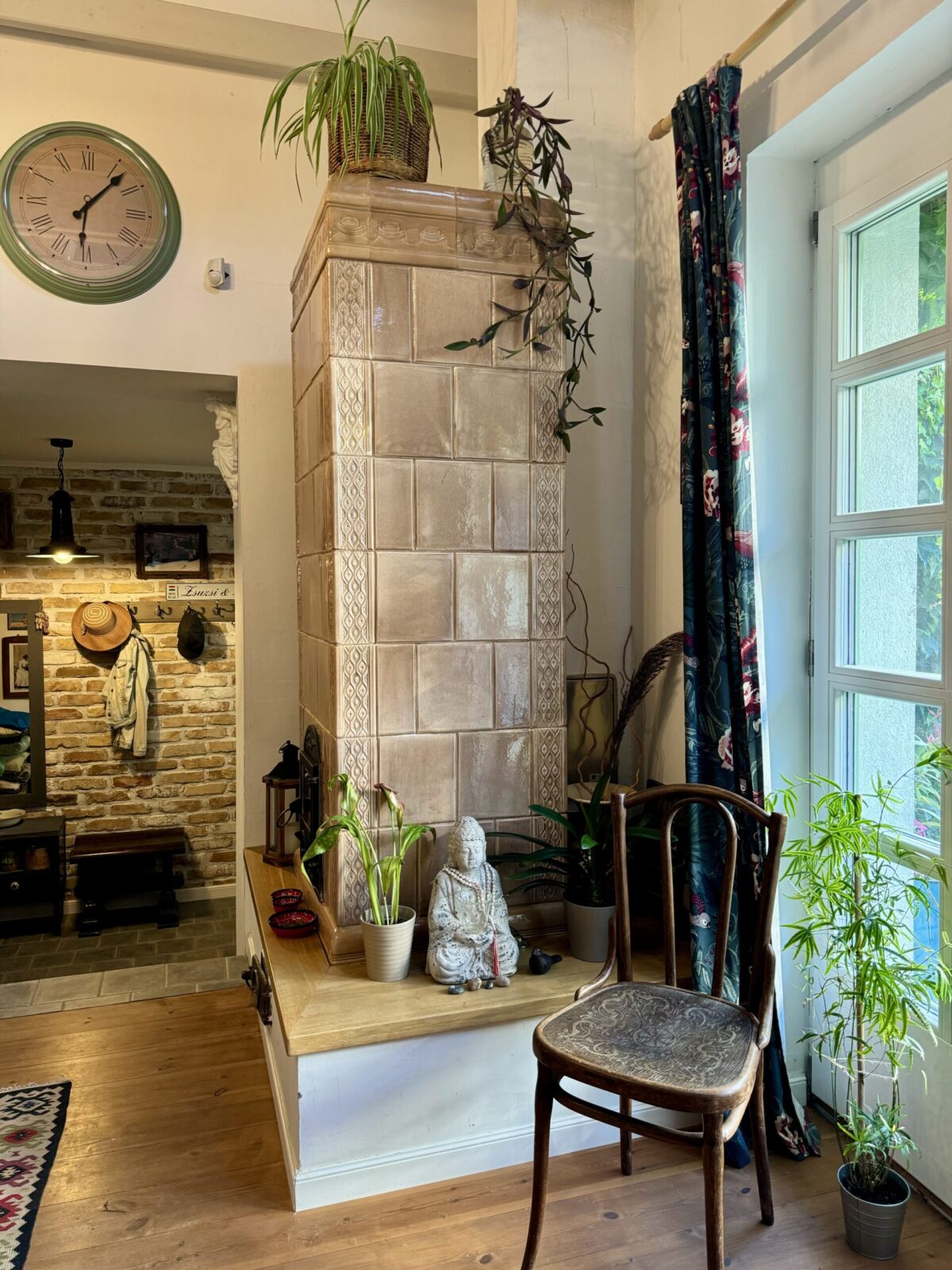 Szabadon kombinálható retró vaskályha vagy színes burkolatú kandalló modern elemekkel, mintás textilekkel, növényekkel. A bioetanolos vagy elektromos álkandalló itt is jól működik, ha inkább hangulatot, mint fűtést szeretnél.
