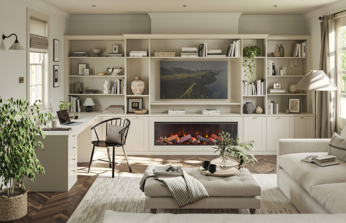 A zárt égésterű, üvegajtós kandallók, illetve a beépített bioetanolos vagy elektromos kandallók mutatnak jól.