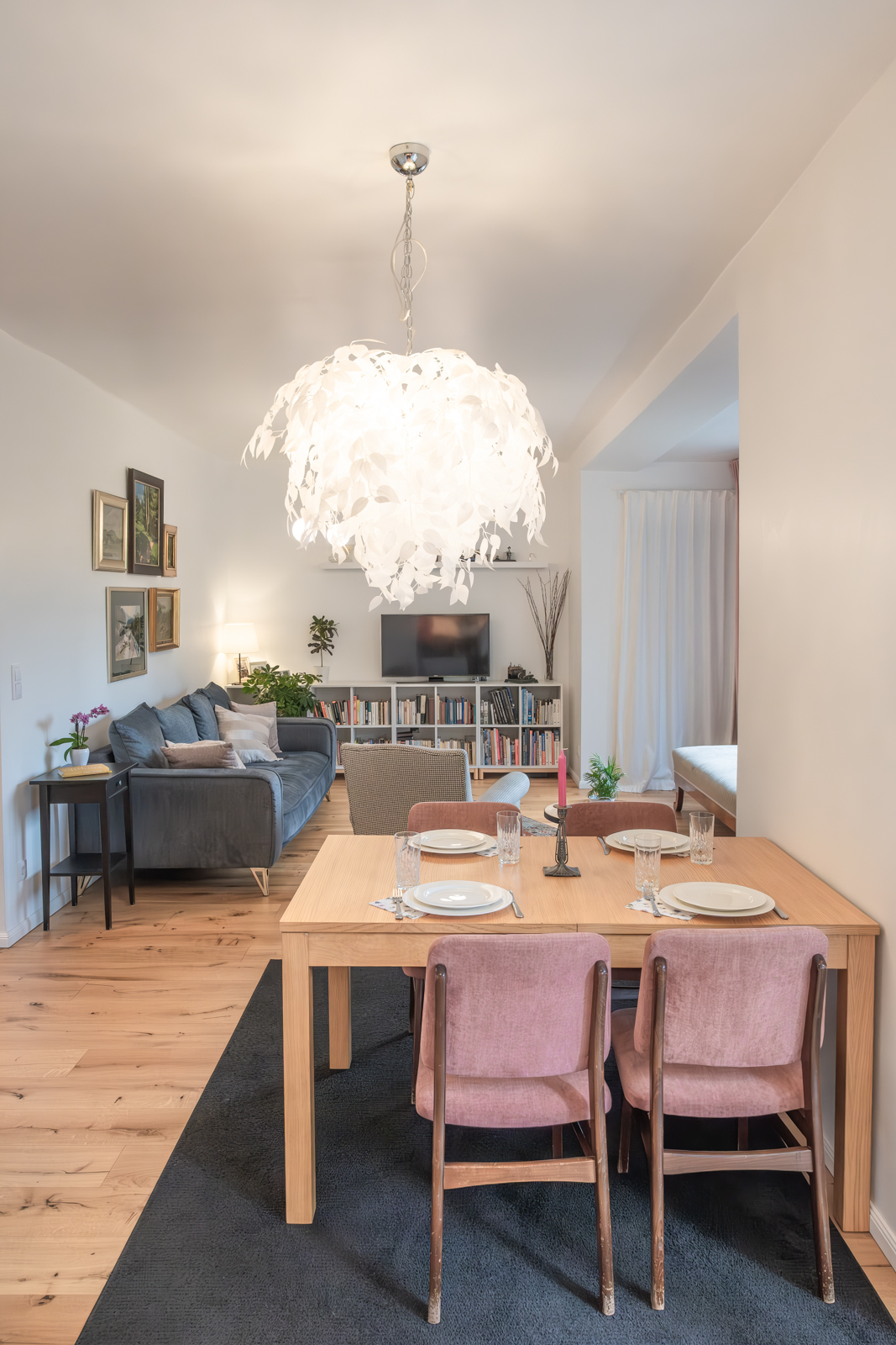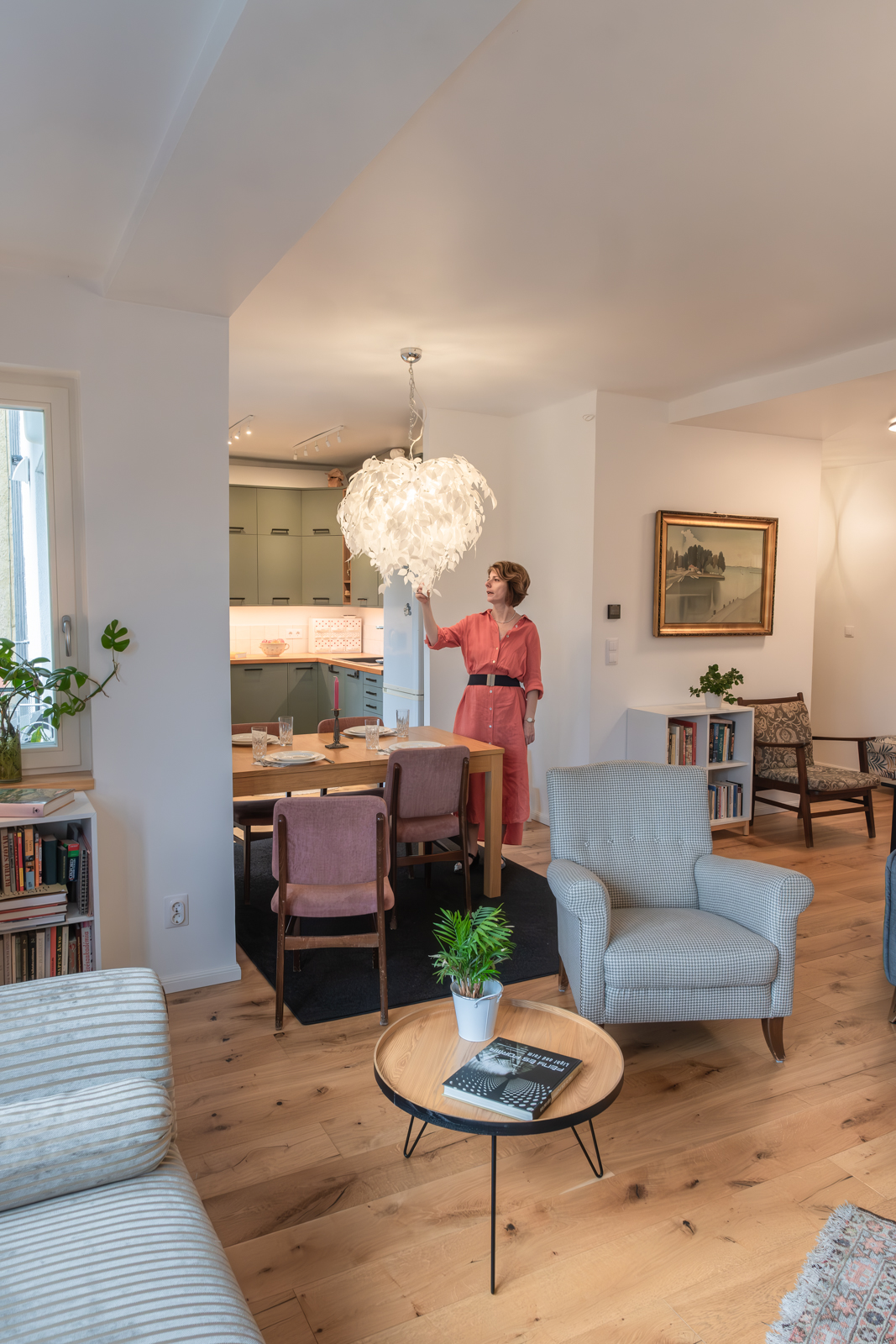 Réka a gyógyszeriparban dolgozik, a férje építészmérnök, így nem csak a vásárlás, hanem a kialakítás során is volt egy erős szakmai háttér a családban. De egyébként Rékától sem áll távol a lakberendezés, az egyetemista évei alatt egy ösztöndíjjal belsőépítészetet tanult külföldön.