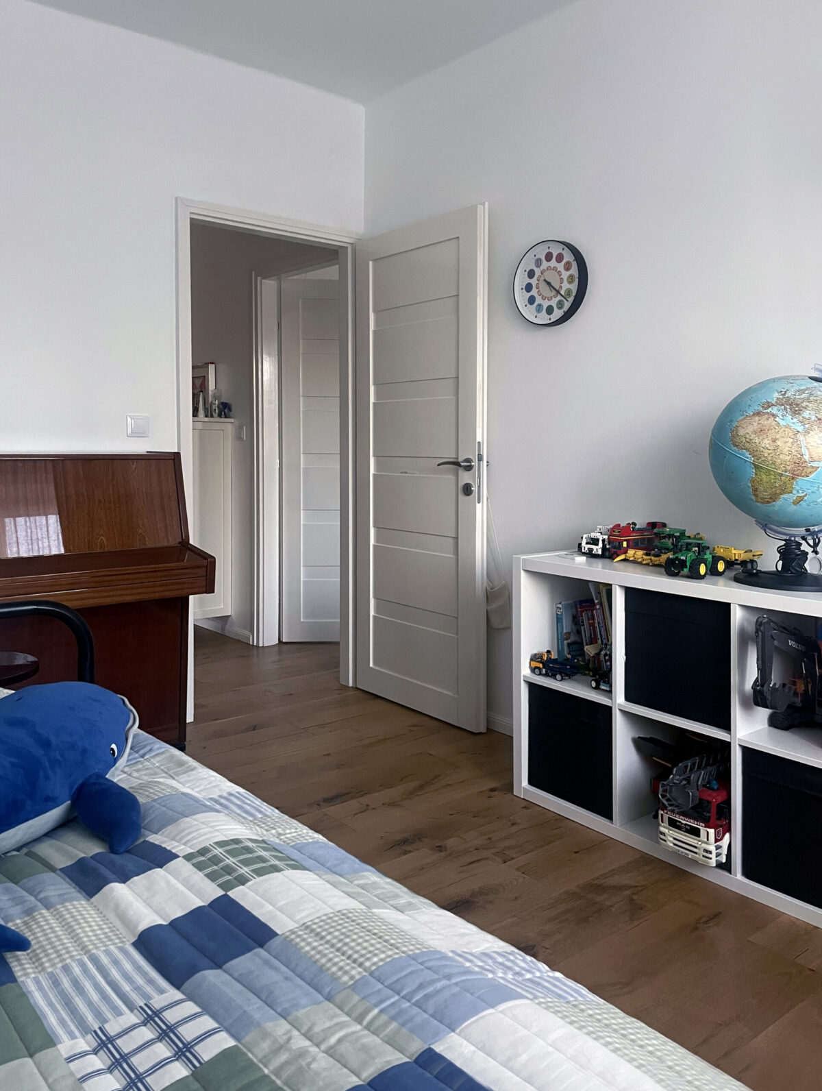 A kisfiú szobájában lévő bútorok szintén velük költöztek, itt sem nagyon kellett kitalálni a berendezést, nála még a játékok vannak főszerepben.