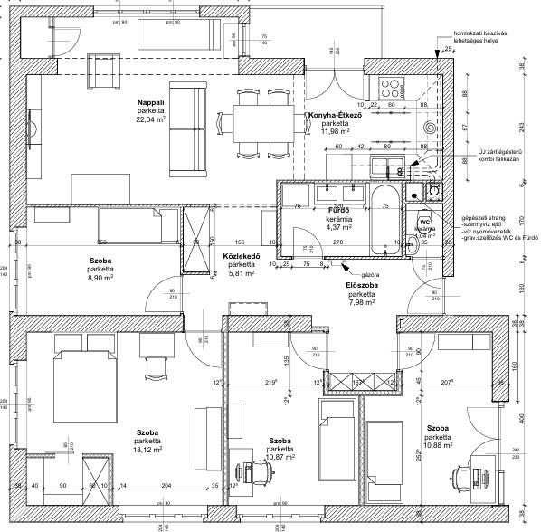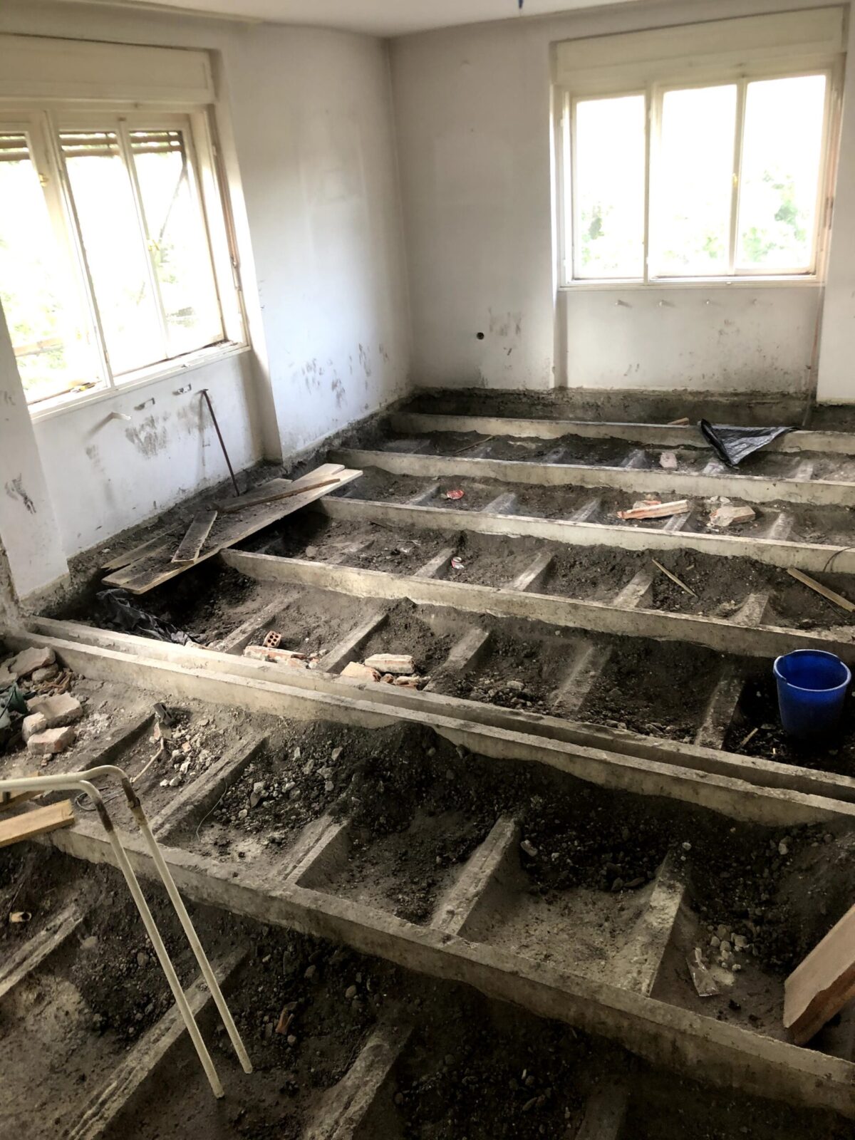 Nyílászárókat és falakat is áthelyeztettek, kicseréltették a födémfeltöltést, kilapátoltatták a kohósalakot, és aljzatbeton került rá.